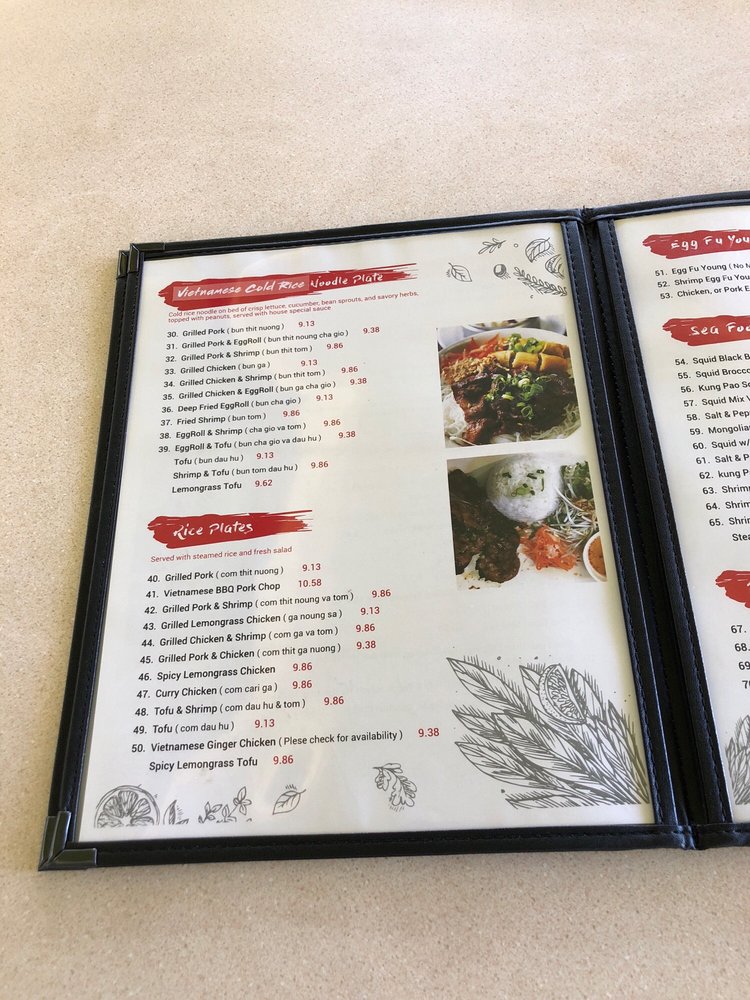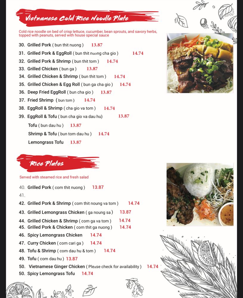 The menu showcases an array of tempting dishes, including flavorful Fried Rice, zesty Kung Pao Squid, and aromatic Pho Tai. The exquisite Chicken Ginger Lemongrass and vegetarian options, like fried rice or cold vermicelli salad, are especially popular among diners, eliciting rave reviews for their freshness and taste.